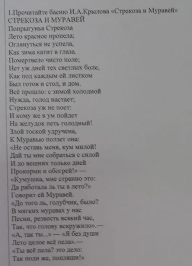 S.Выпишите ключевые саова. Говорение Перескажите басню И.А.Крылова «Стрекоза и Муравей»