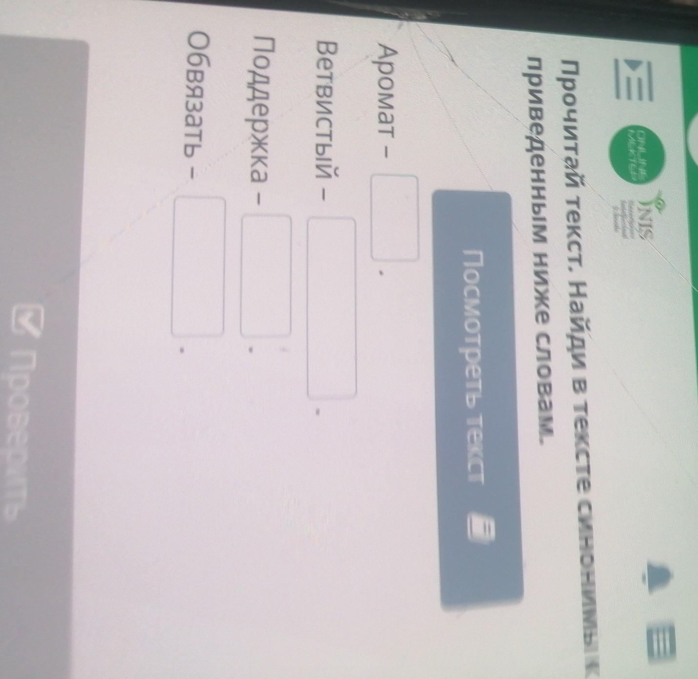 Прочитай текст. Найди в тексте синонимы к приведенным ниже словам. Посмотреть текст Аромат – Ветвистый — Поддержка Обвязать — Проверить