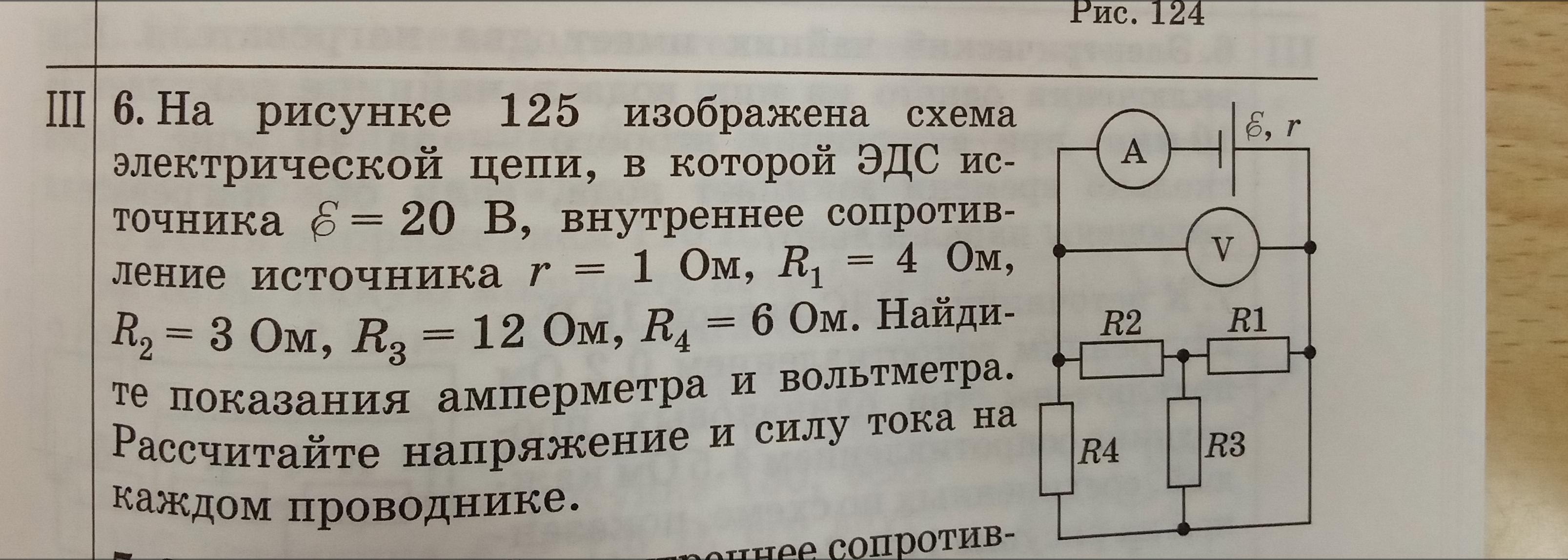 Нужно рассчитать напряжение и силу тока на каждом ппроводнике