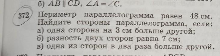 б) Пусть х - первая сторона. Тогда х + 7 - вторая сторона. Составим уравнение: