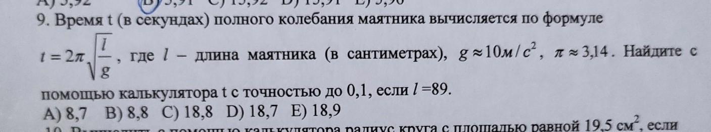 Объяснение: Делим 89 на 10, нажимаем на корень, умножаем на 2 и на 3,14