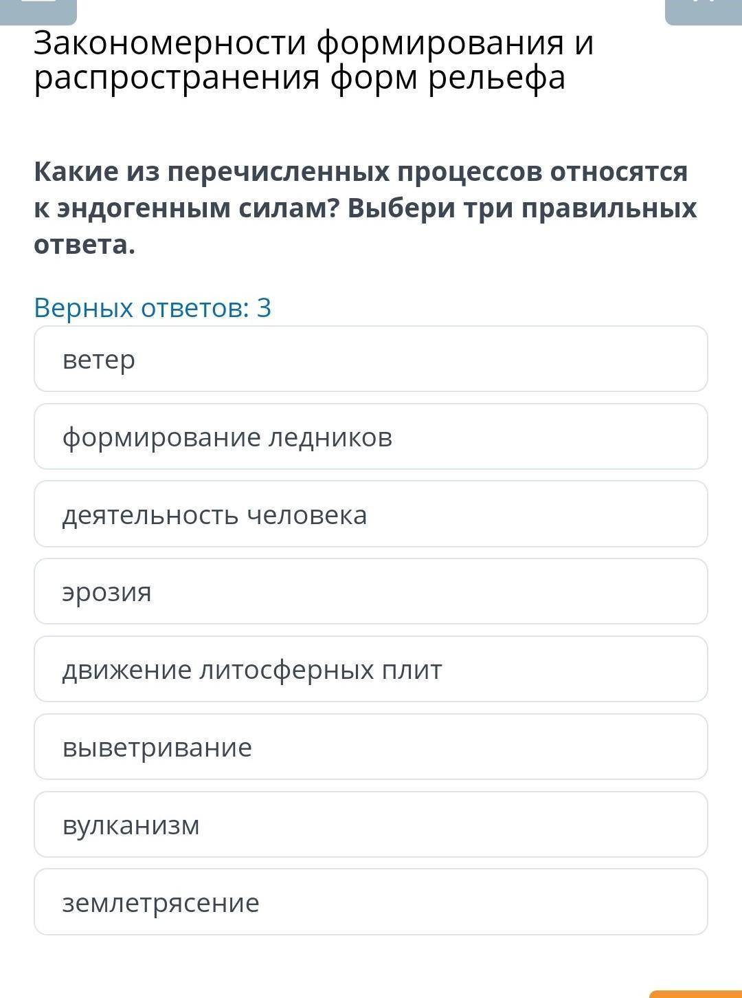 Ответ: Вулканизм, землетрясение, движение литосферных плит.