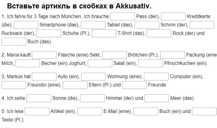 3. ein, eine, einen, eine, - (без артикля), - (без артикля)