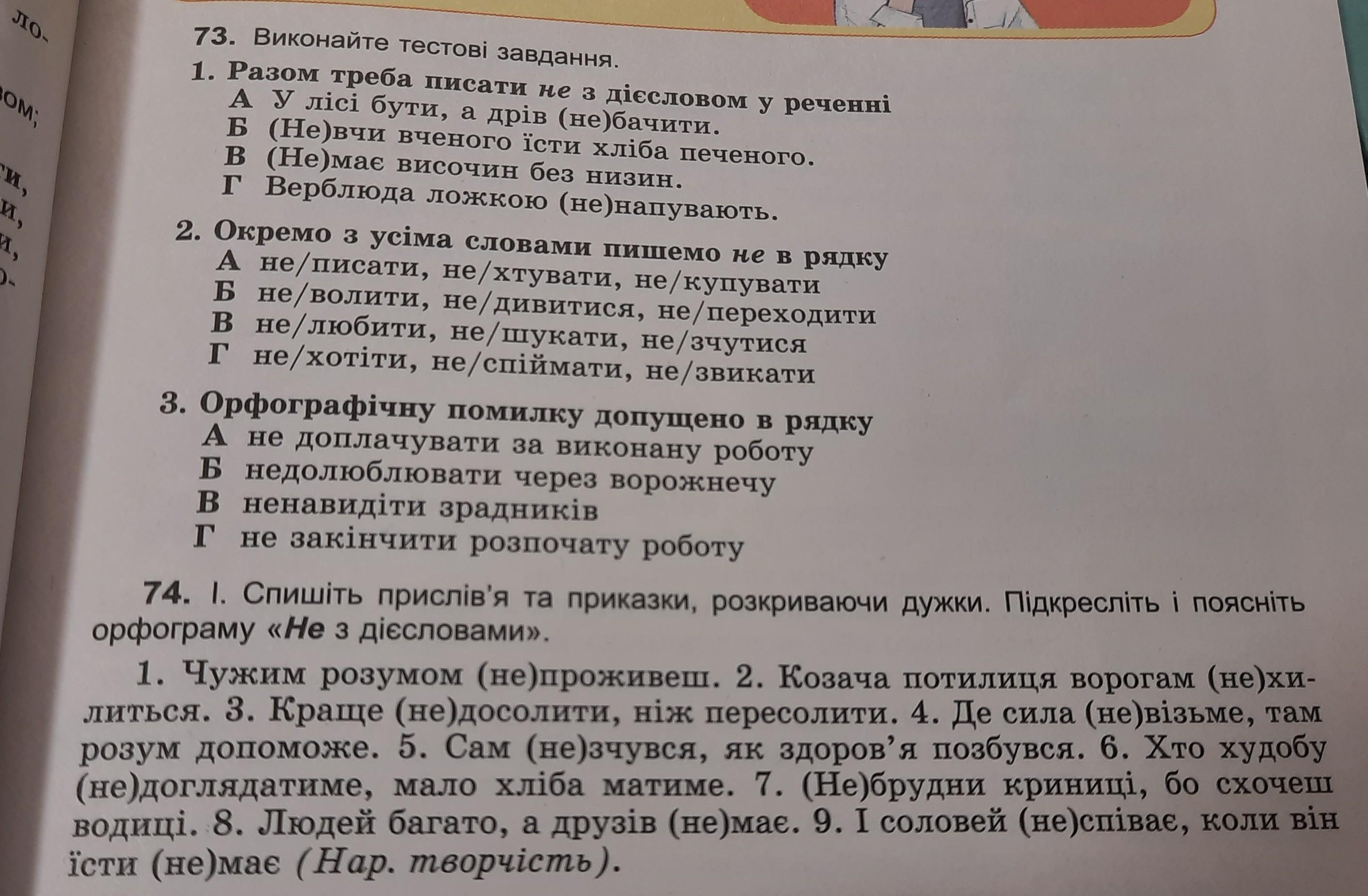 4-не проживеш; не хилиться; не візьме; незчувся; недоглядатиме; не брудни; немає; не співає; не має