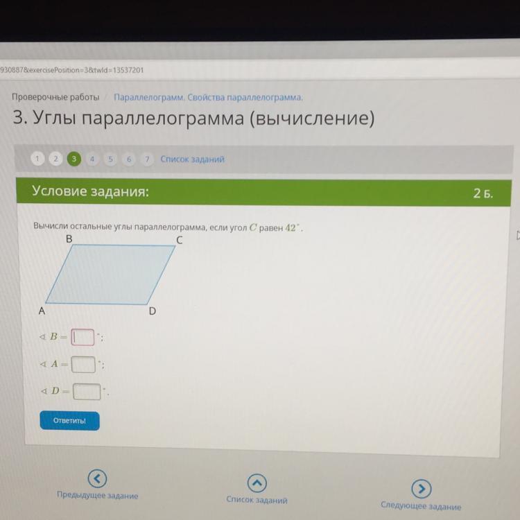 ∠A = 42°, ∠B = 138°, ∠D = 138°
