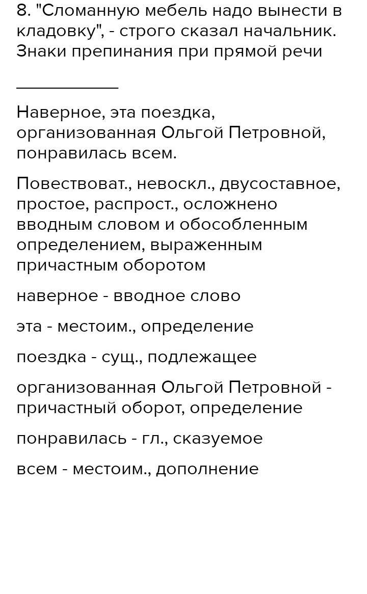 Упр. № 8 Переписать предложения, расставить и объяснить знаки препинания. Выполнить синтаксический разбор предложения №2 Я хочу чтобы люди живущие на нашей планет(е-и) любили друг друга. 2.Наверное эта поездка организованная Ольгой Петровной понравилась всем.3. Вырытая посреди двора яма была наполнена мусором и мой начальник прик..зал ра(з-с)чистить её. 4.Соболь это пушной зверёк обладающий ценным мехом. 5.Юноши окончившие этот институт легко могут устроит(?)ся на любую работу потому что мы даем пр.красное образование.6. Недавно выкрашенные полы бл..стели на стенах висели новые стенды. 7. Конечно человек быстро переб..жавший улицу нарушил правила дорожного дв..жения но милиционер почему(то) не задержал его. 8. Сломанную мебель надо вынести в кладовку строго сказал начальник.