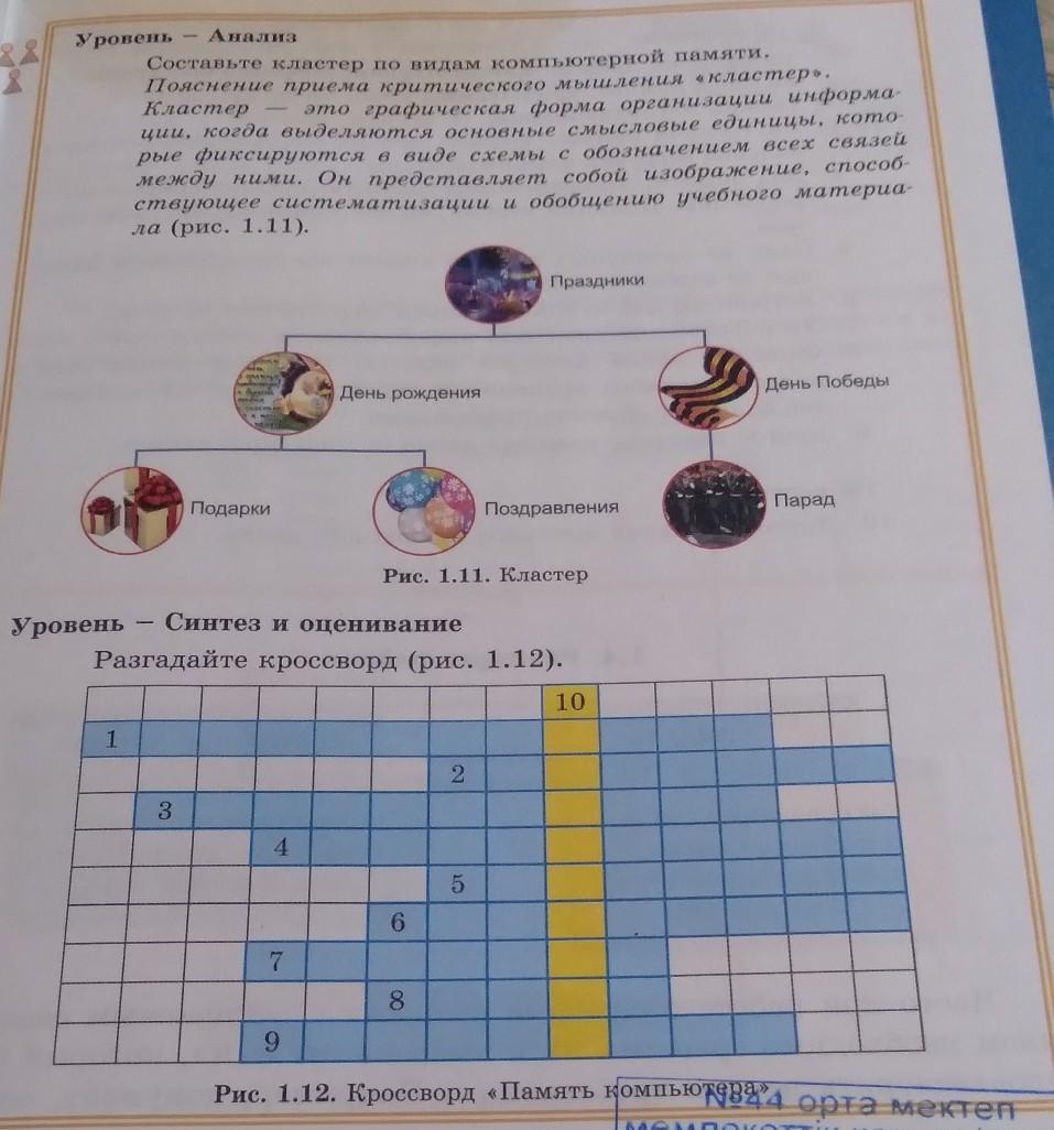 1. Оперативная 2. Дискета 3. Постоянная 4. Оптическая 5. Жесткий 6. Дисковод 7. Память 8. Диск 9. Лазерный 10. Винчестер