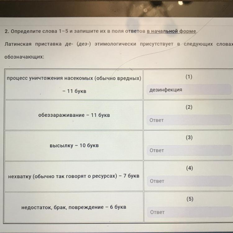 Ответ:обеззараживание-Дезинфекция , высылка-депортация,Недостаток-Дефект