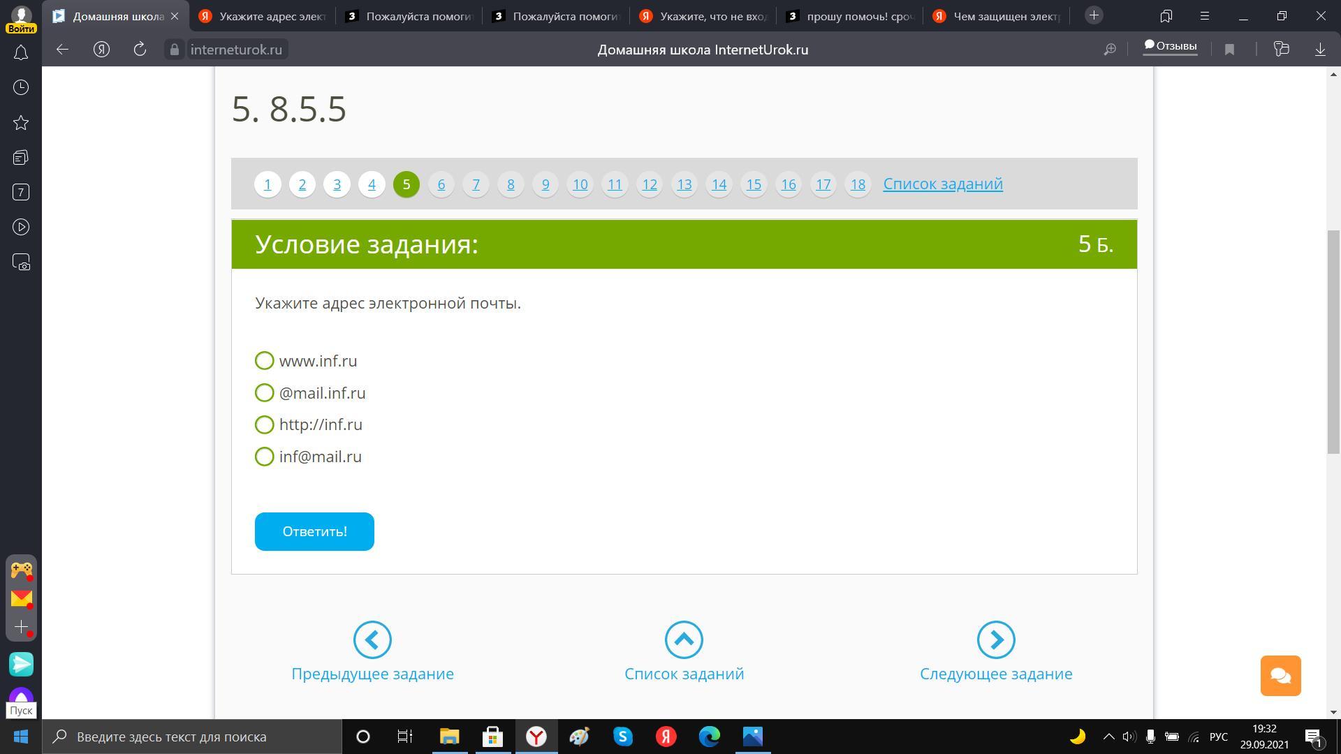 4 Вариант Адрес состоит из двух частей, разделённых символом «@»