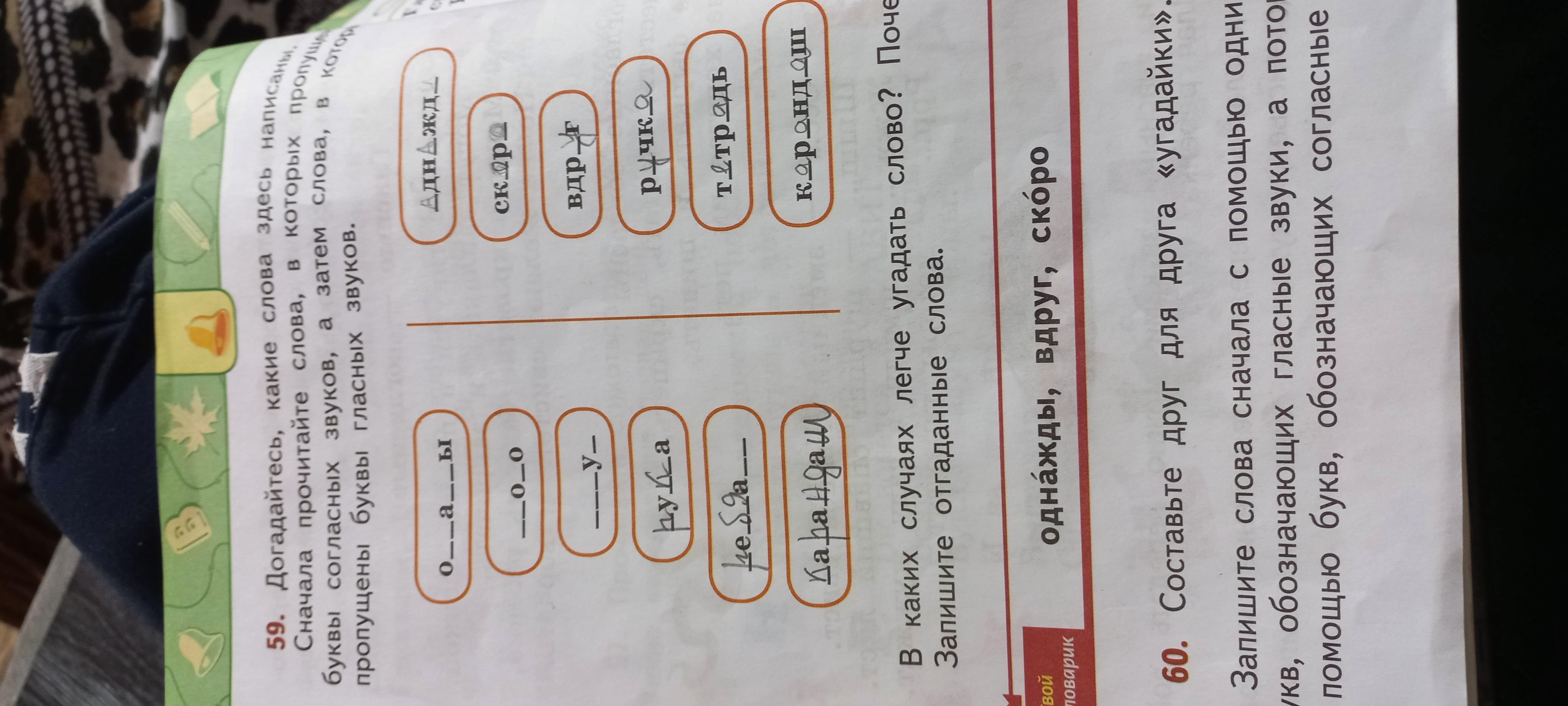 Вообще в обеих колонках слова одинаковые, только в первой пропущены согласные буквы, а во второй гласные.