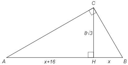 CH^2 =AH*BH => 64*3 =x(x+16) => x^2 +16x -192 =0 => x=8 (x>0)