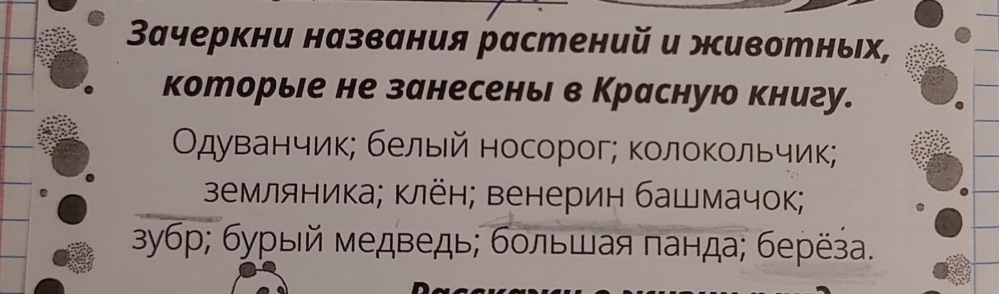 все кроме зубра, белого носорога, венерин башмачок, большая панда
