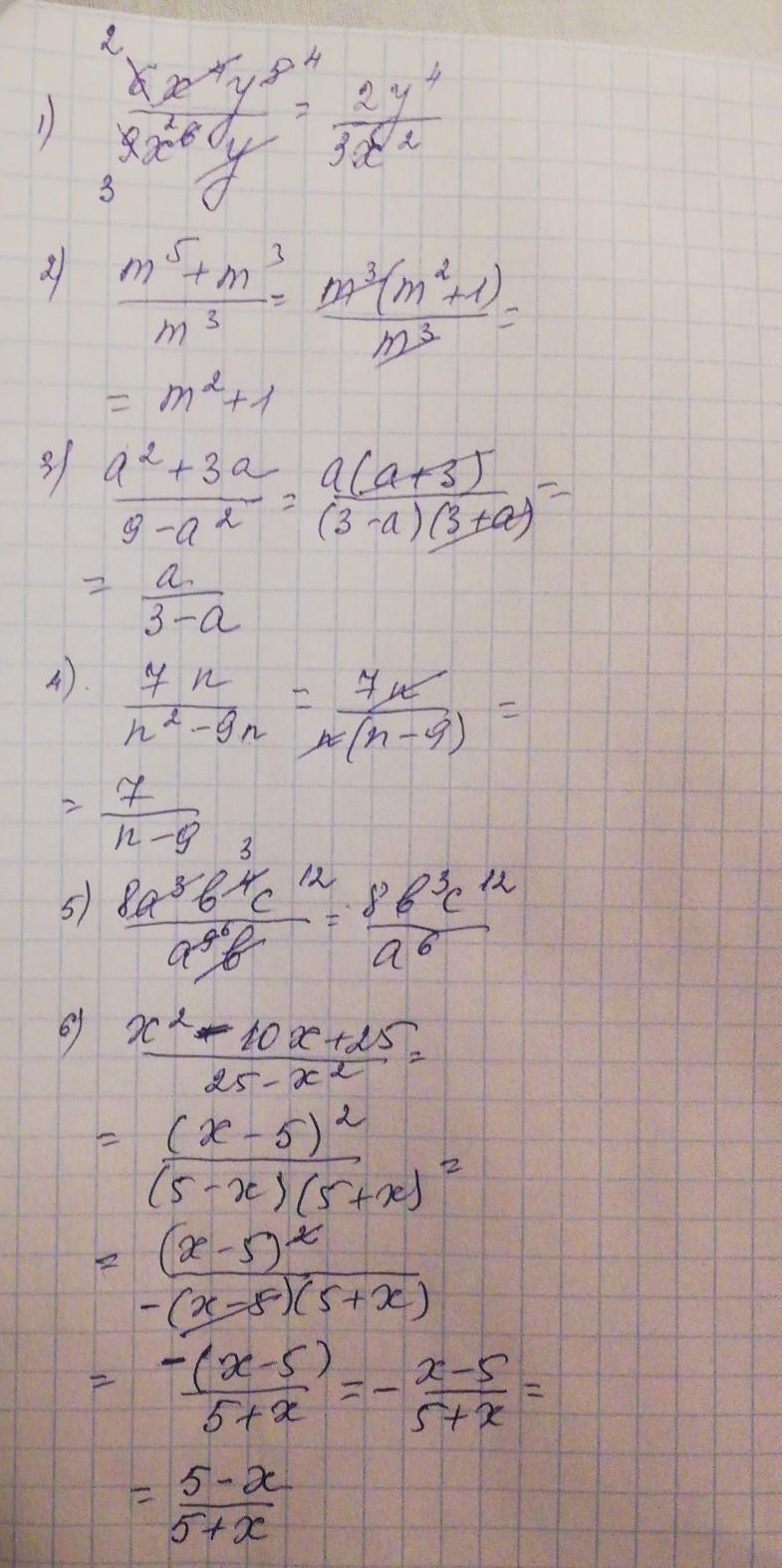 А)2у^4/3х^2 б) (м^3*(м^2+1))/м^3=м^2+1 в) (а*(а+3))/(3-а)(3+а)=а/3-а
