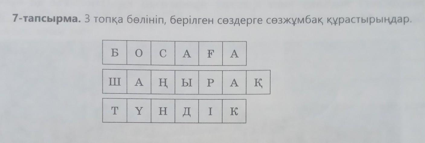 7-тапсырма. 3 топқа бөлініп, берілген сөздерге сөзжұмбақ, құрастырыңдар. шын ответке 50балл