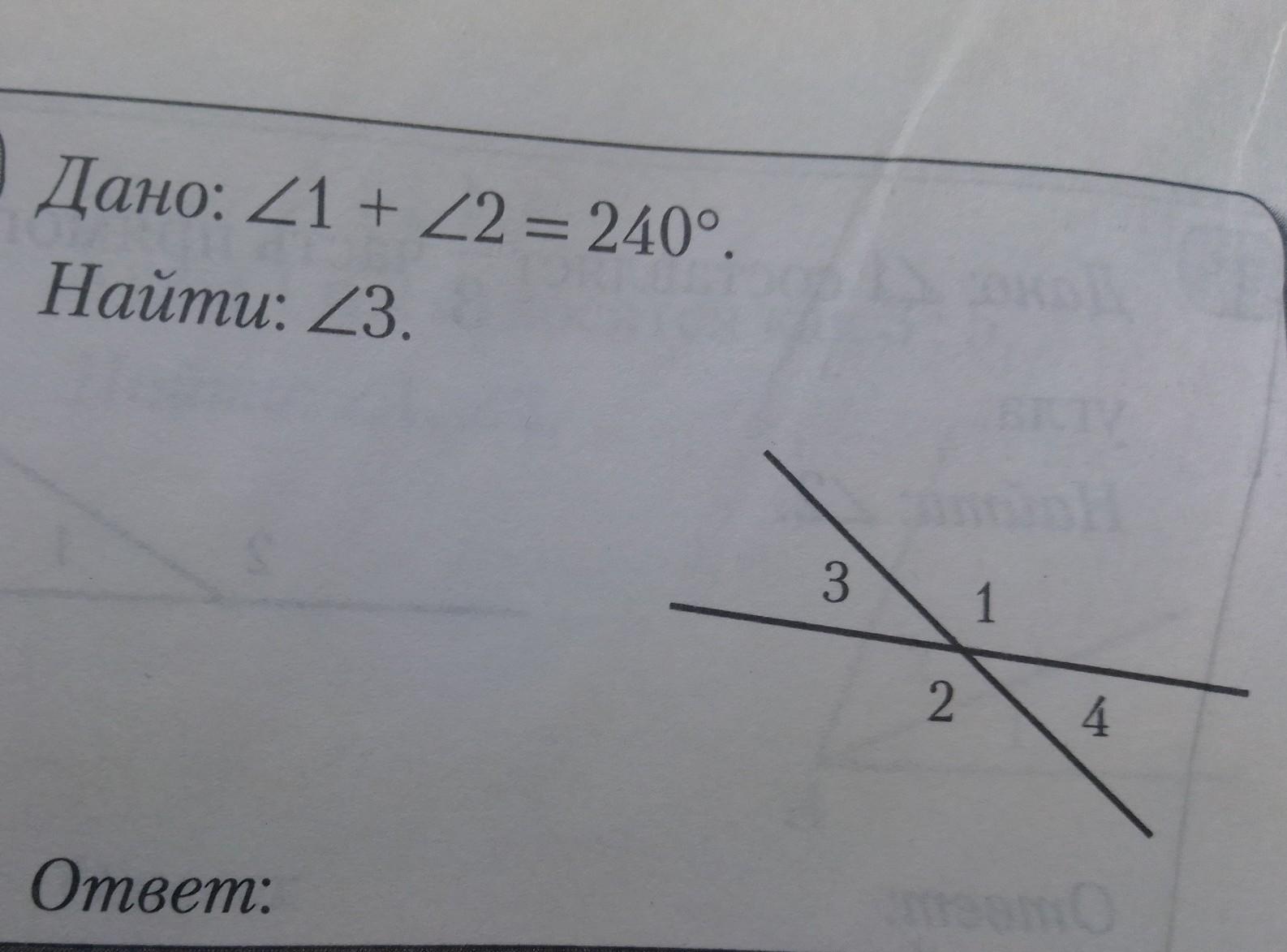 По условию дано, что угол 1 и угол 2 в сумме дают 240 градусов.