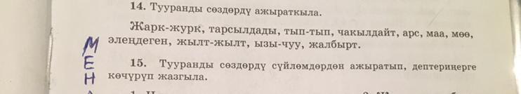 тарсылдады, чакылдайт, элендеген, жалбырт.