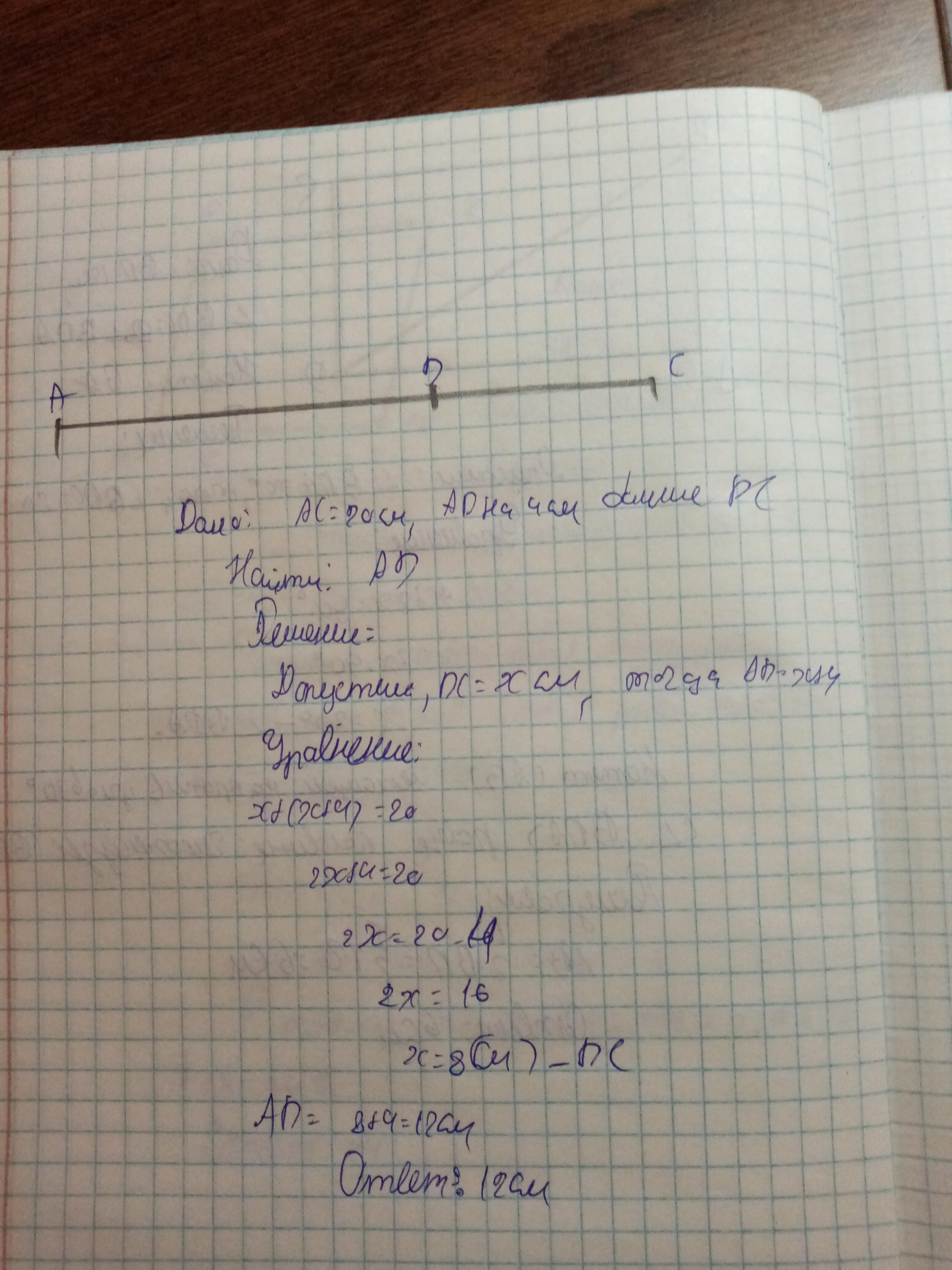 Знайдіть довжину відрізка AD, якщо вона на 4 см більша за до-
