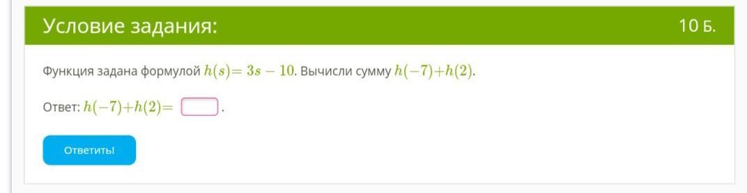 Запись h(–7) обозначает, что Вы должны подставить –7 вместо s и решить соответствующее уравнение: