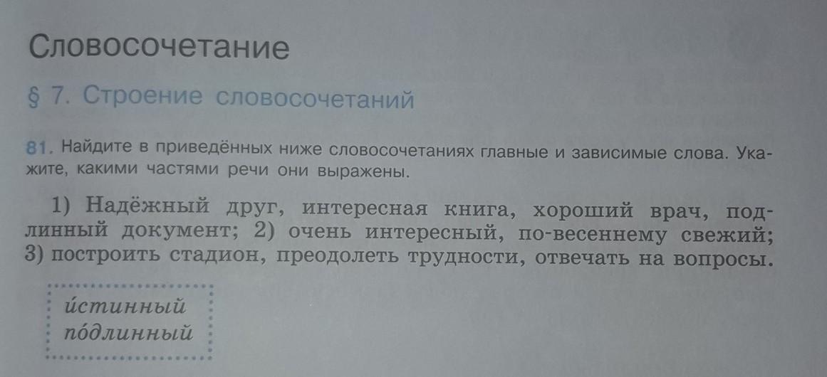 документ(главное, сущ) подлинный(зависимое, прил);