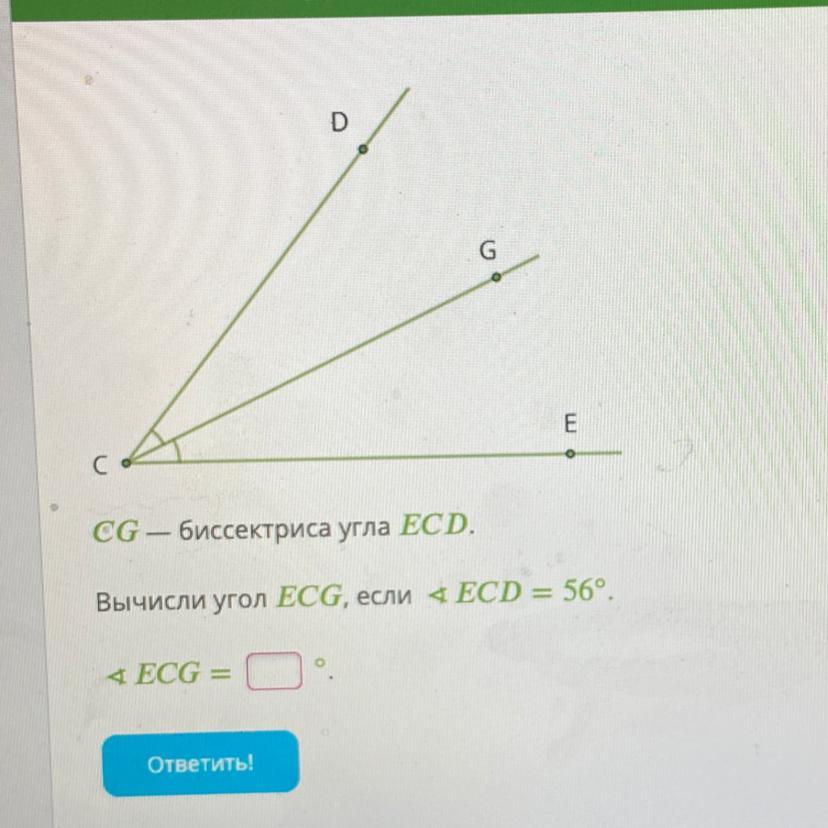бессиктрисса делит угол пополам.поэтому мы берём наше число такое как 56° и делим на 2