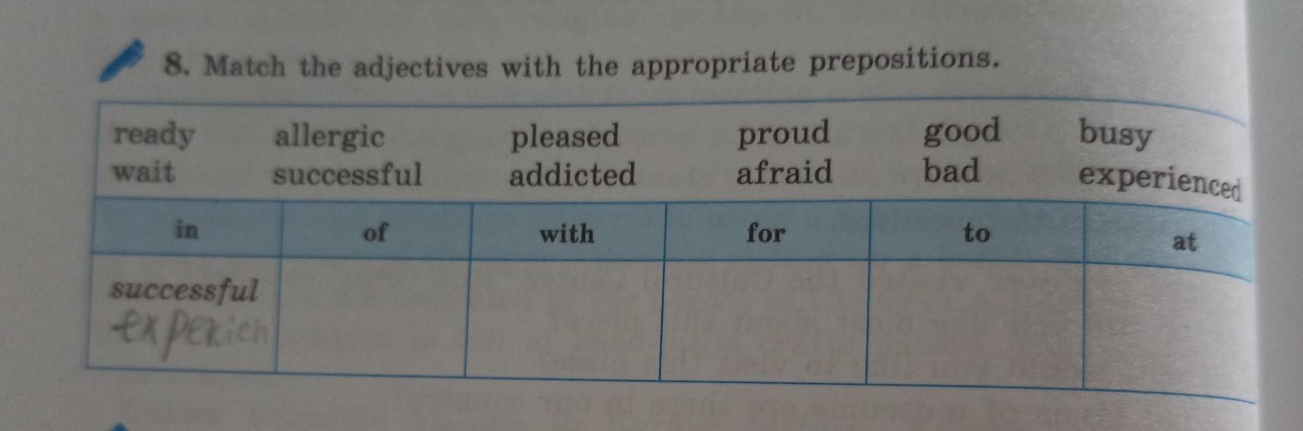 8.Match the adjectives with the appropriate preposition. пожалуйста быстрее помогите ,