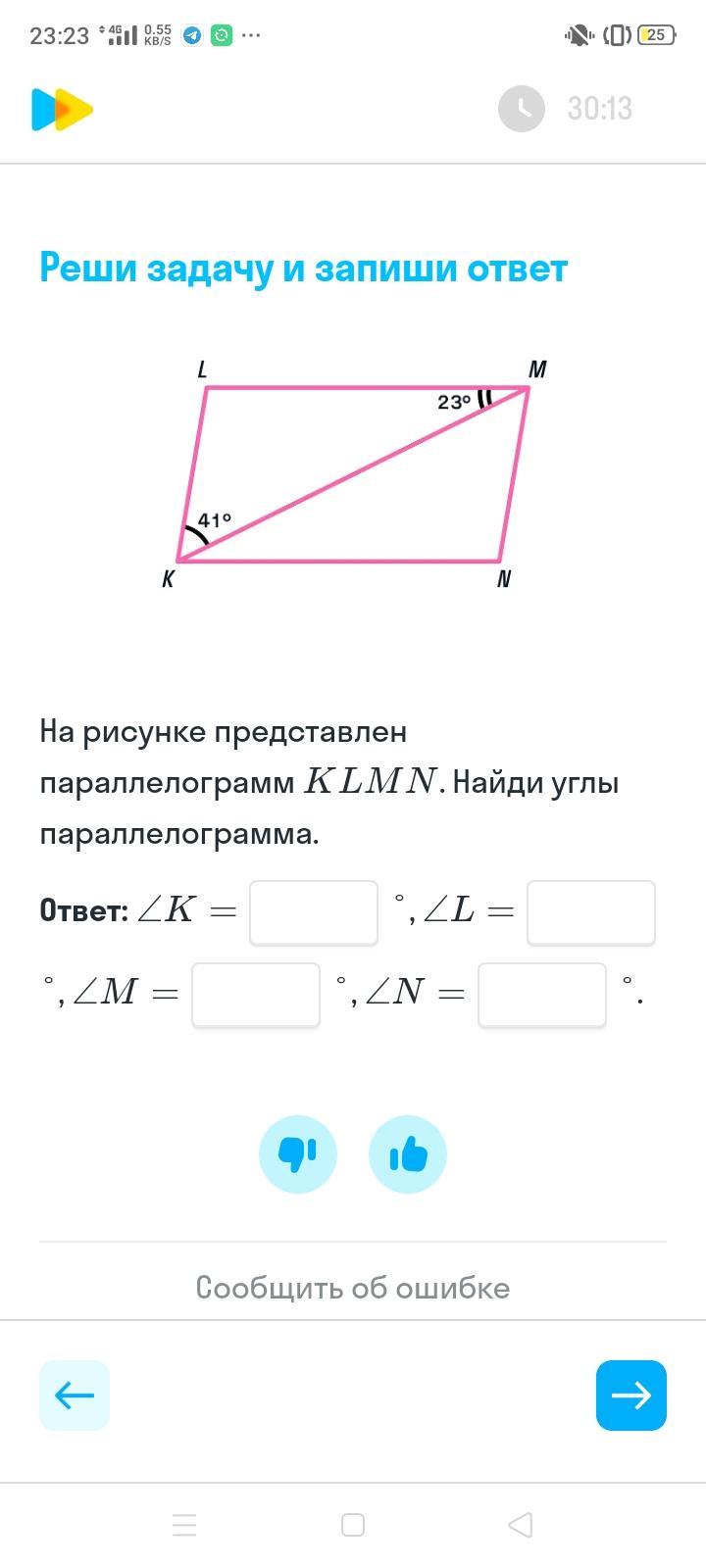K=M=41+23=64°