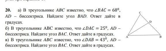 1) ∠ВАС = 68°, то ∠BAD = ∠68°/2 = 34°