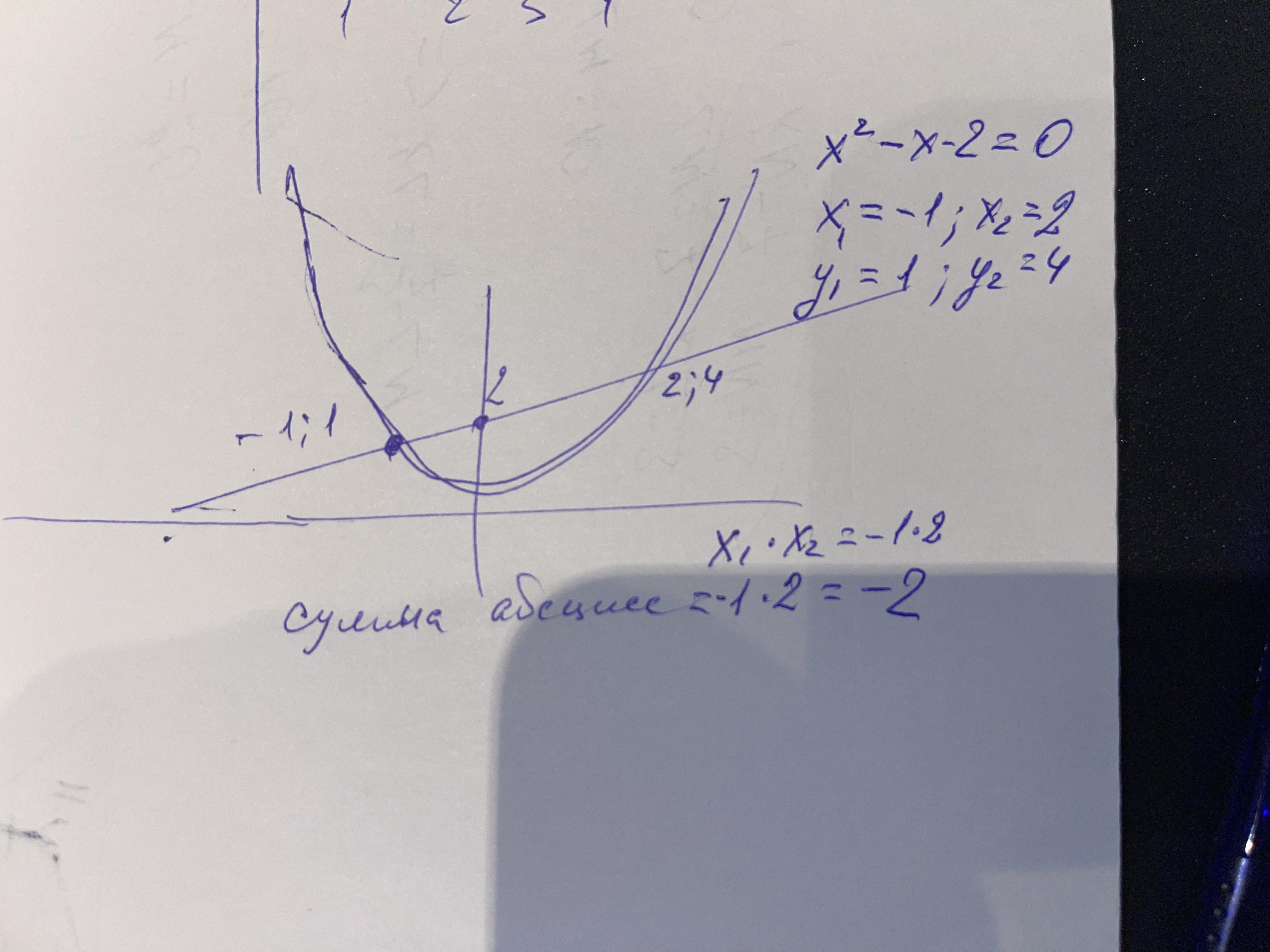 Постройте графики функций у=х2 и y=x+2 Найдите координаты точек пересечения этих графиков. В ответе запишите сумму абсцисс этих точек.