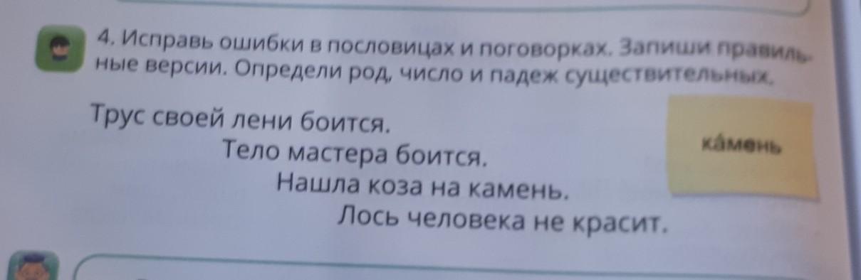 Исправь ошибки в пословица и поговорках.Запиши правильные версии. Определи род и число существвительных.
