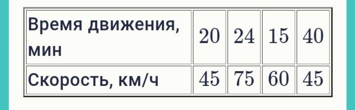 Маршрутка двигалась с постоянной скоростью между остановочными пунктами. На всех остановках она находилась одинаковое количество времени. Время движения на каждом участке и скорость на этом участке приведены в таблице. Средняя скорость за время движения на четырех участках υср=50.0 км/ч.