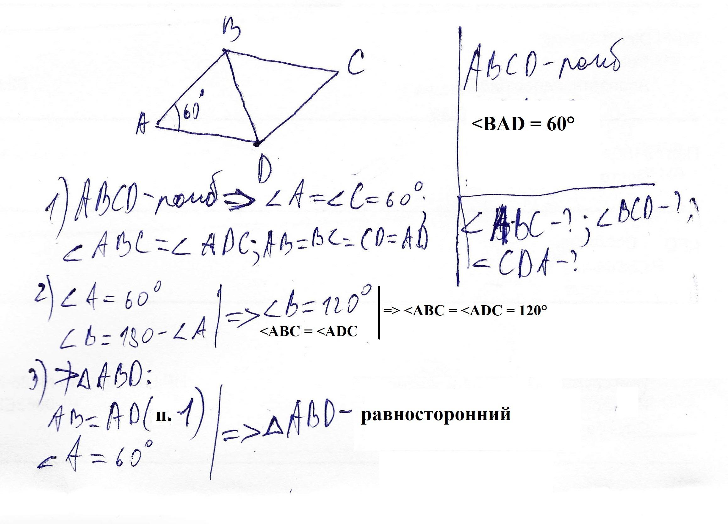 △ABD - равносторонний; <ABC = 120°; <BCD = 60°; <ADC = 120°