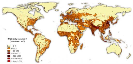 - Назовите районы земного шара с самой высокой плотностью населения.