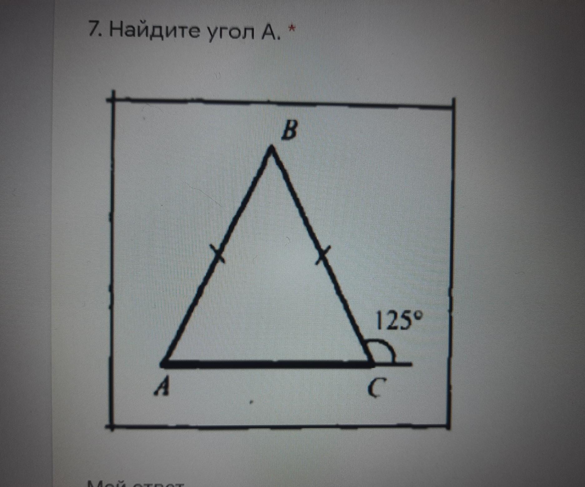 мы 180-125=55 (угол С), а так как угол А=С значит угол равен А=55