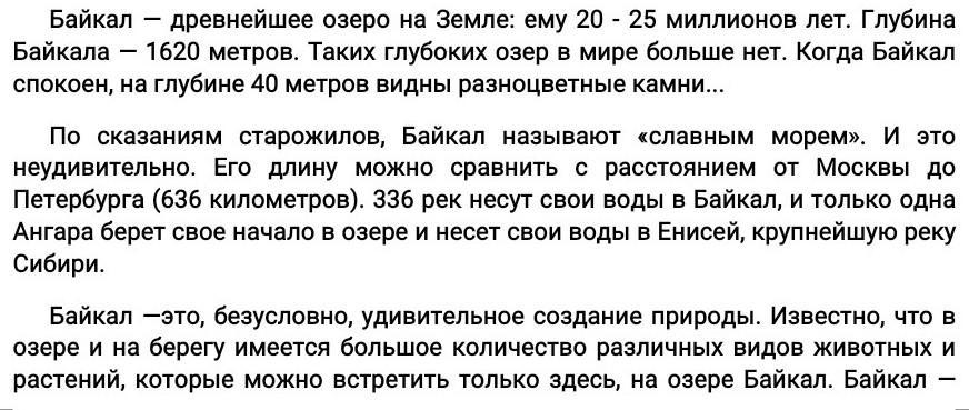 Ответ; 1. Описание озера Байкал 2. Слухи о озере Байкал. 3. удивительное создание природы Байкал.