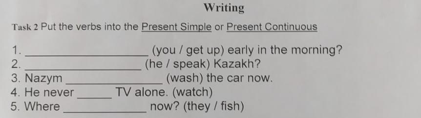Task put the verbs into the present simple or present continuous 1______(you/get up) early in the morning помогитеее((