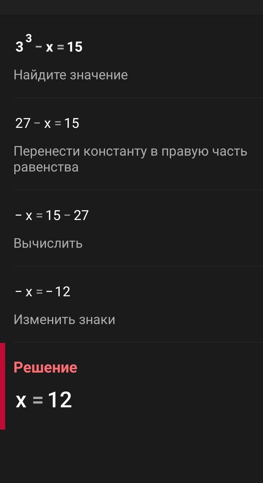 Ответ: 27-х=15 или х=27-15=12.