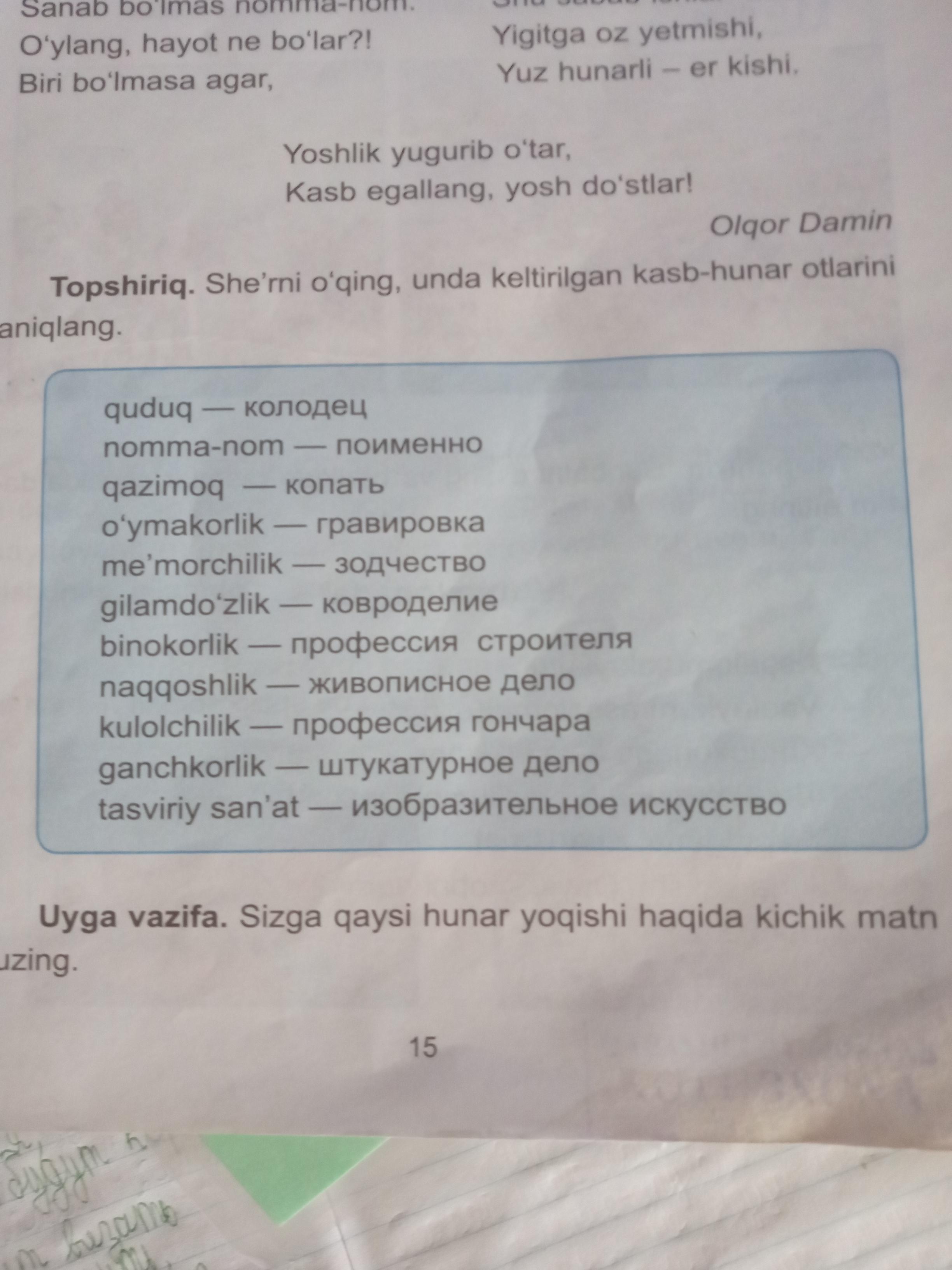 Bu so'zlarning barchasi bilan jumlalar tuzish kerak