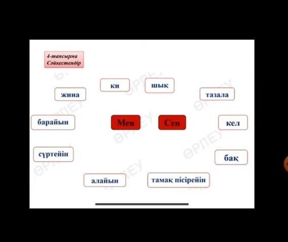Мен барайын,сүртейнің, алайын, тамақ пісірейін. Сен ки, шық,тазала,кел,бақ,жина.