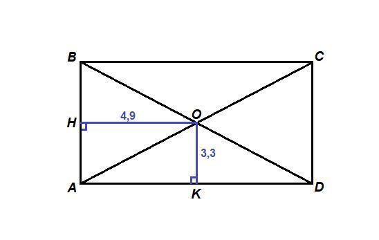 Відстань від точки перетину діагоналей прямокутника до його суміжних сторін