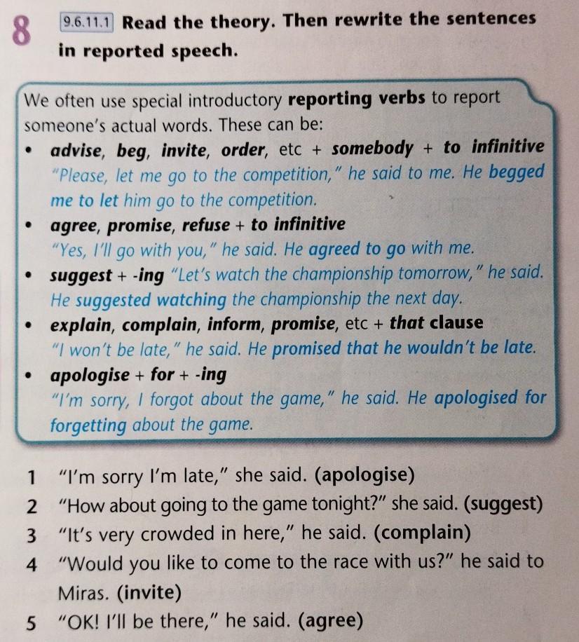 2.She suggested going to the game 3.He complained that's very crowded in here.