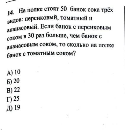 если в 30раз больше то точно банок с ананасовым соком 1 банка персиковых 30 вместе 31 значит с томатным 19