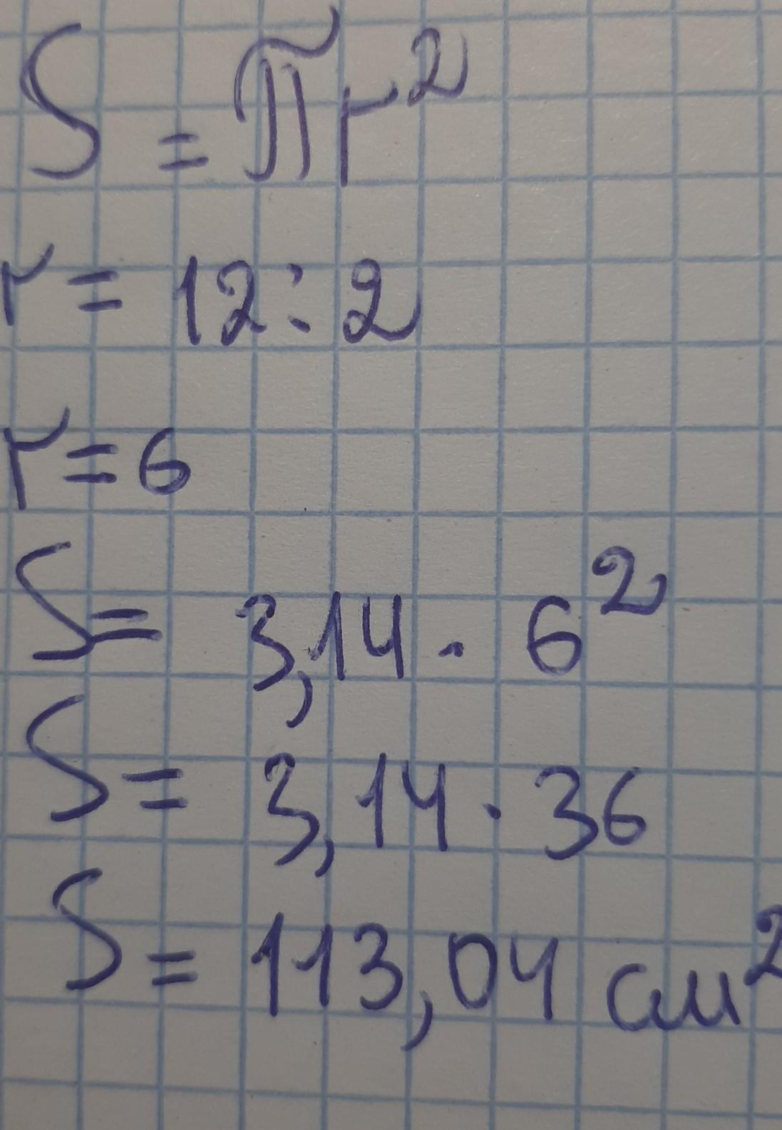 S = 3,14×6^2 = 3,14×36 = 113.04 см^2