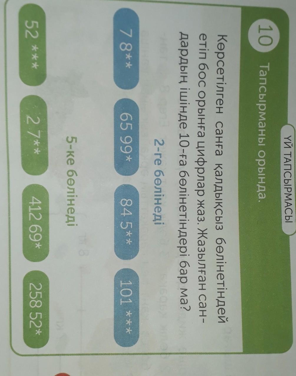 10-ға бөлінетіндер бар: 7800, 65990, 84500, 422690, 258520.