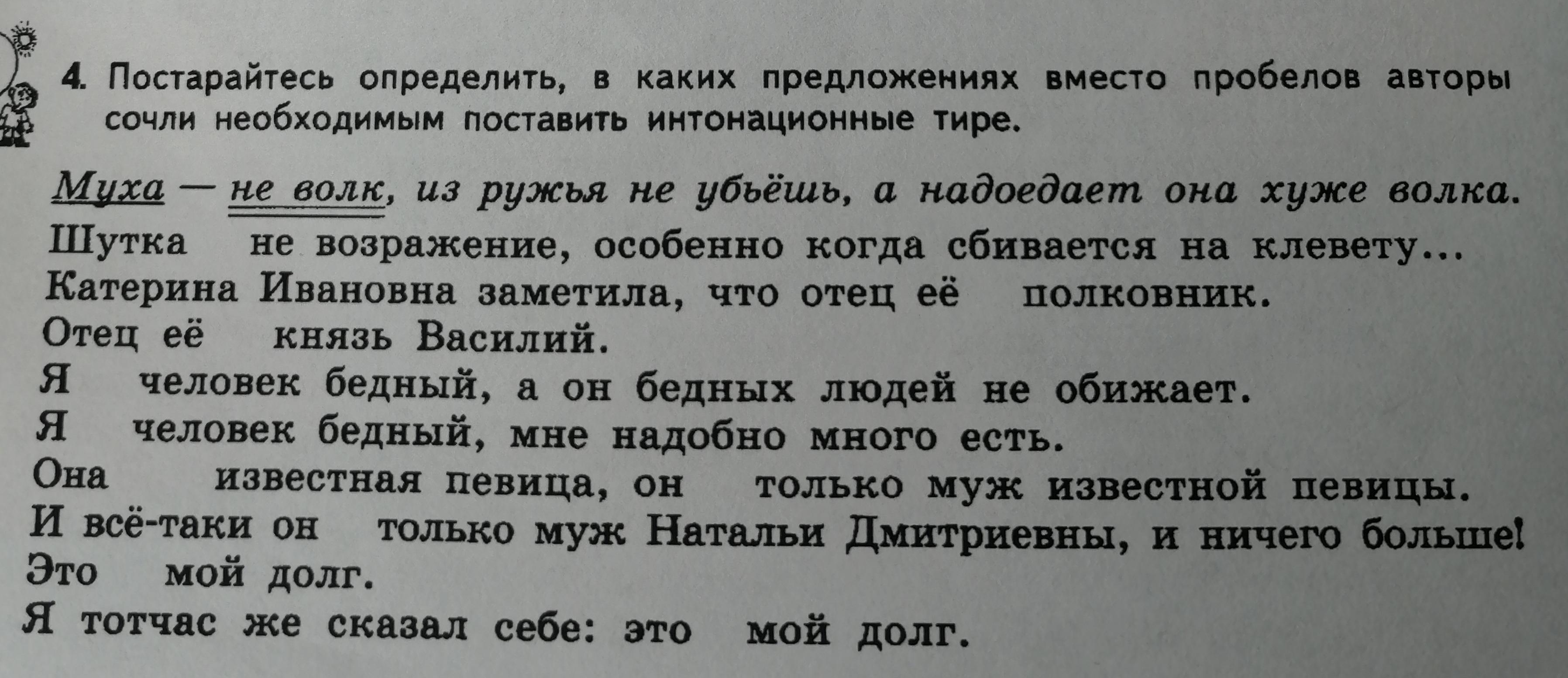 Постарайтесь определить, в каких предложениях вместо пробелов авторы сочли необходимым поставить интонационные тире.