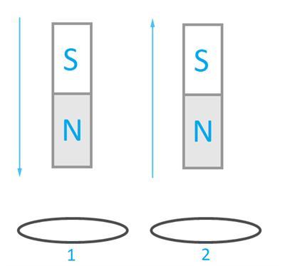 На рисунке 1 изображены схемы двух опытов: в первом случае магнит вносят в сплошное медное кольцо, а во втором случае выносят из сплошного фарфорового кольца.