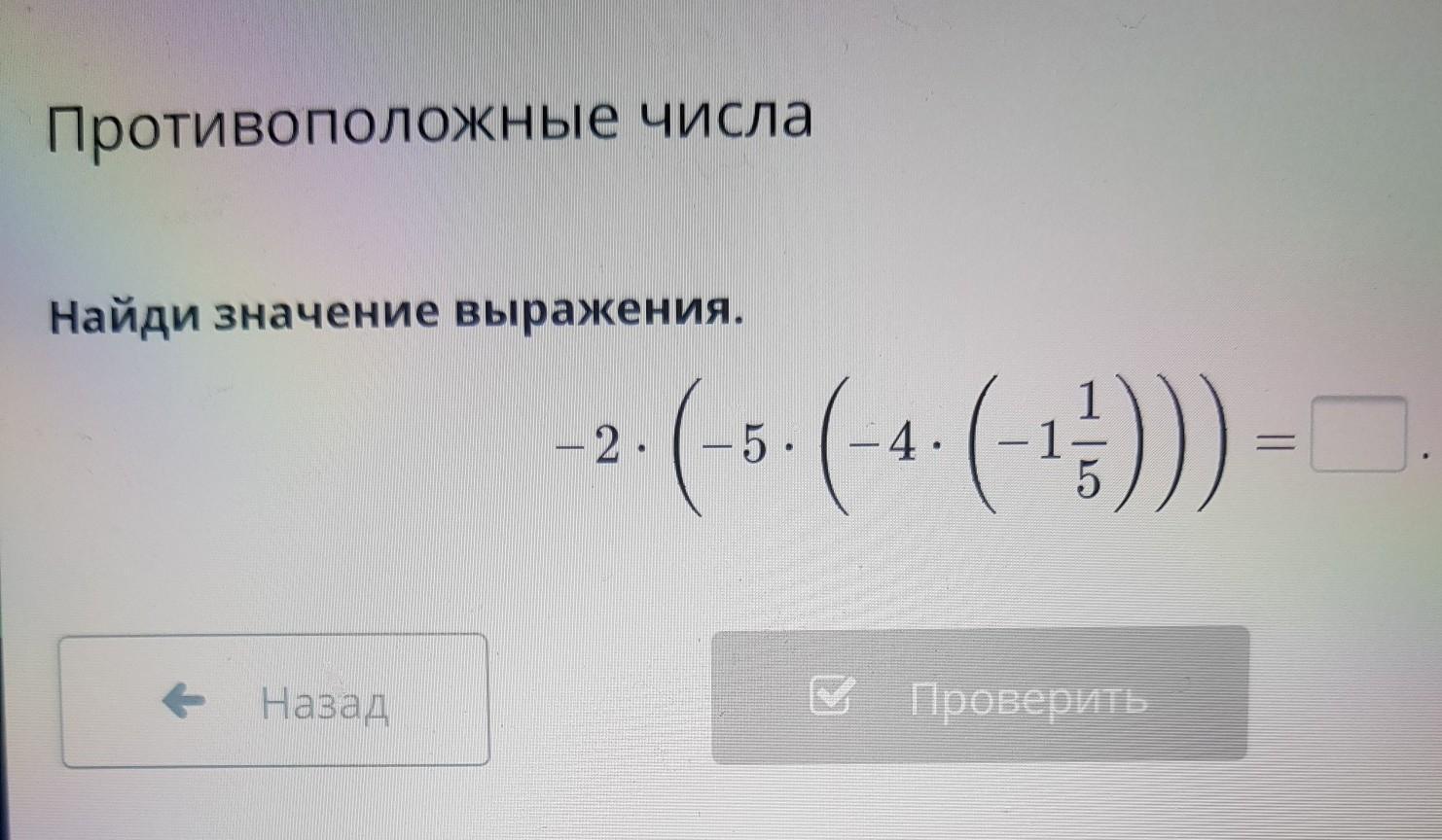 Пошаговое объяснение:-2×(-5×(-4×(- 1 1/5)))=2×5×4×6/5=48 проверено в онлайн мектеп