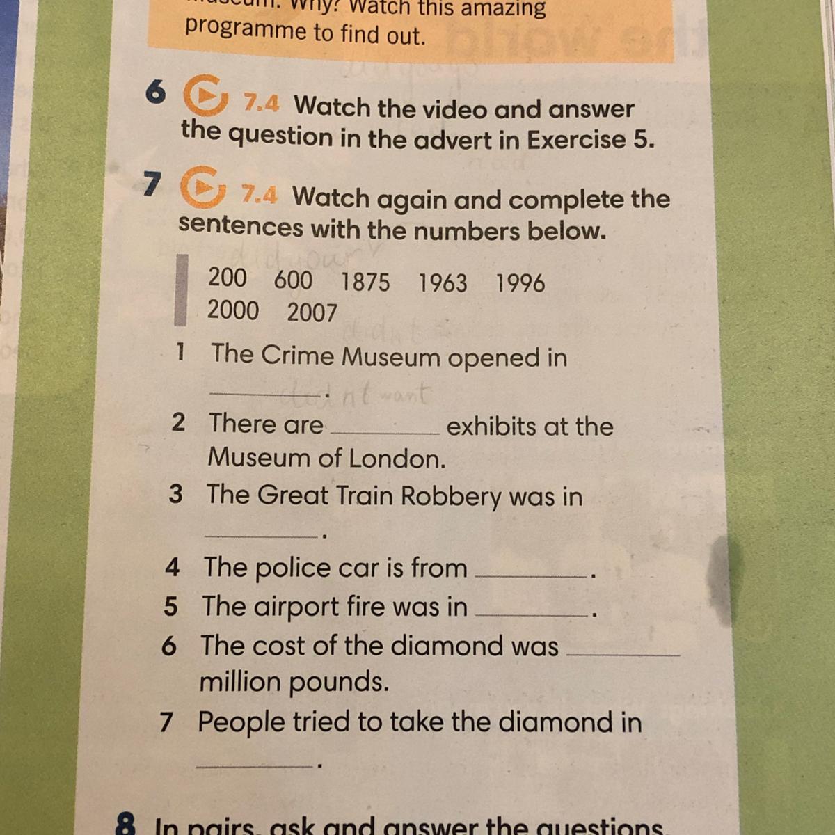 Привет! В задании написано, что на вопросы нужно отвечать только посмотрев видео, ведь именно в нем говорится информация, по которой ты и должна сделать тест. Всё, чем я или другие люди, которые также не смотрели видео, могут тебе помочь это просто с переводом. Но, в принципе, на некоторые вопросы можно логически ответить. К примеру, один из вариантов ответов 200, а в некоторых вопрос в каком году, не думаю, что именно 200 здесь подойдёт и так далее.