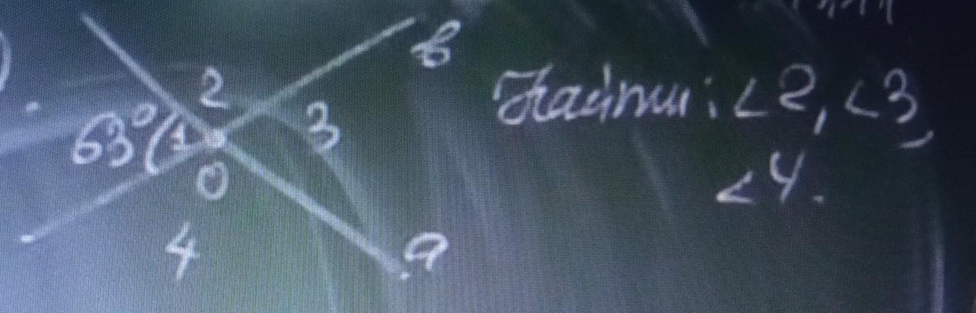Угол3=63°, т.к. равен углу 1, т.к. тоже накрест лежащие