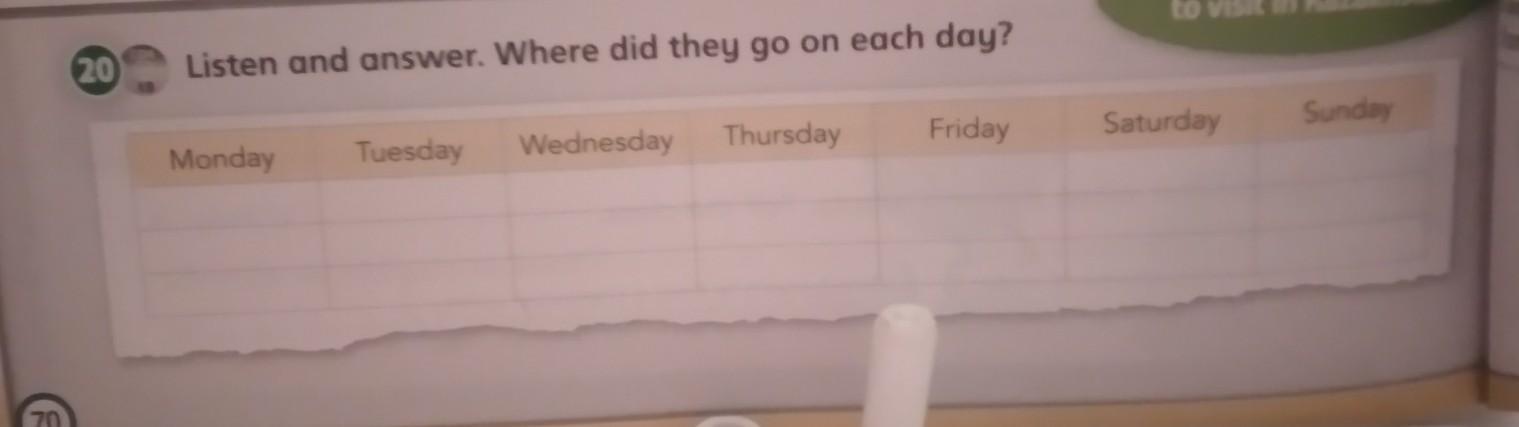 Слушай и пиши куда они ходили в те дни которые там написаны