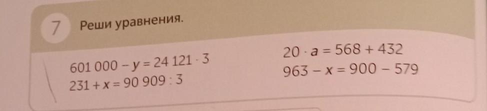 вспоминаем как находить частное или просто ставим пример 4-1=3 или другой лёгкий,тоесть чтоб найти y нужно от 601 000-72 363